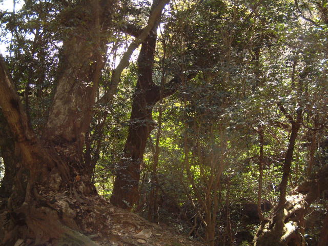 高層にはコジイまたはスダジイが優占する常緑広葉樹林で、場所によってはアラカシ、ウラジロガシ、